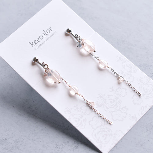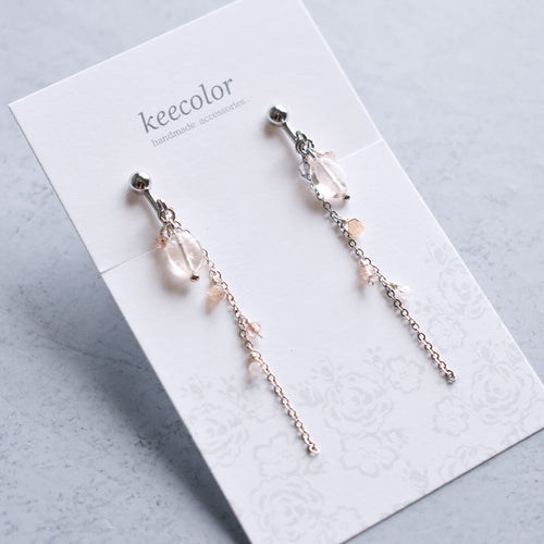 4月誕生石 モルガナイト ベビーピンク イヤリング(ピアス変更可)